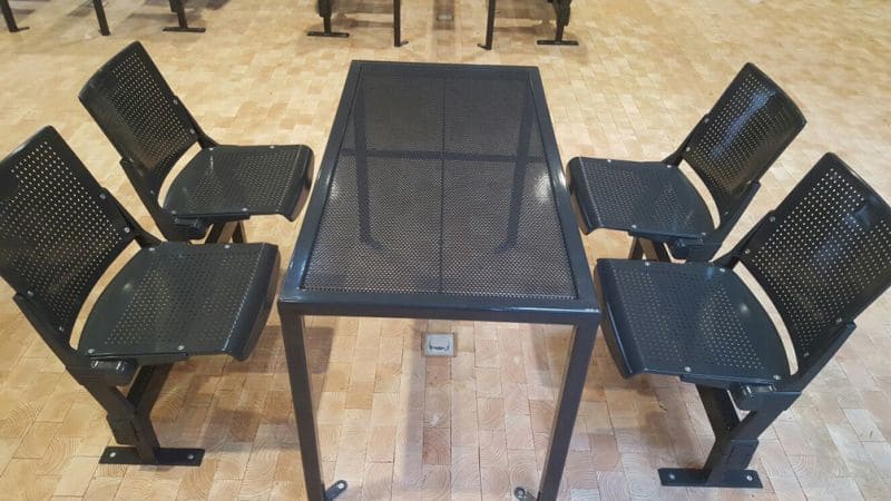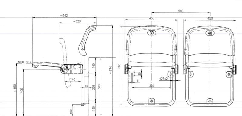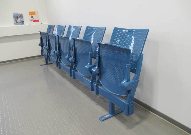 Mit einem Standfuß oder einer Konsole an jedem dritten Sitzplatz in den Boden oder der Wand verankert, beziehungsweise eingebohrt - das klingt nach Sitzfestigkeit. Sitzfest und stabil ist es zudem allemal, denn mit einer unglaublichen Widerstandsfähigkeit trotz möglichst wenig Bodenablage bieten diese Sitze absolute Sicherheit, auch wenn es beispielsweise zu Ausnahmefällen oder Unwettern kommen sollte. Formschön und hochklappbar sind nur zwei von unzähligen top Eigenschaften, die dieses Modell charakterisieren.