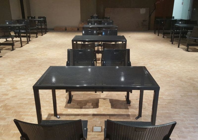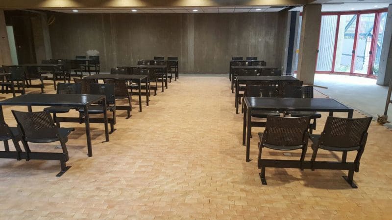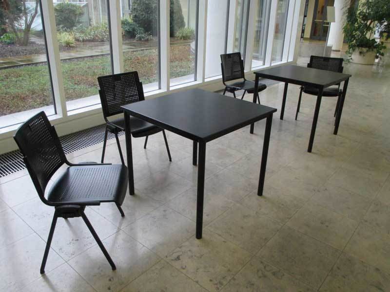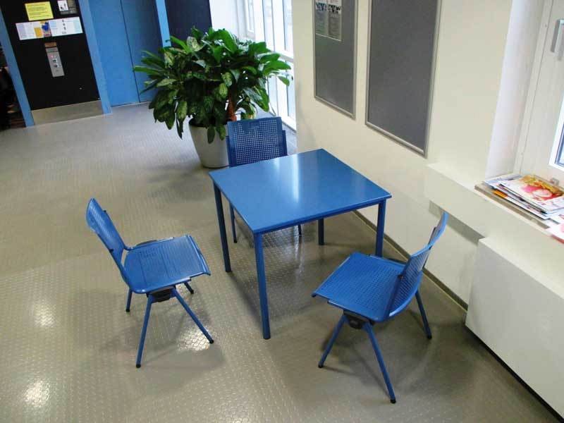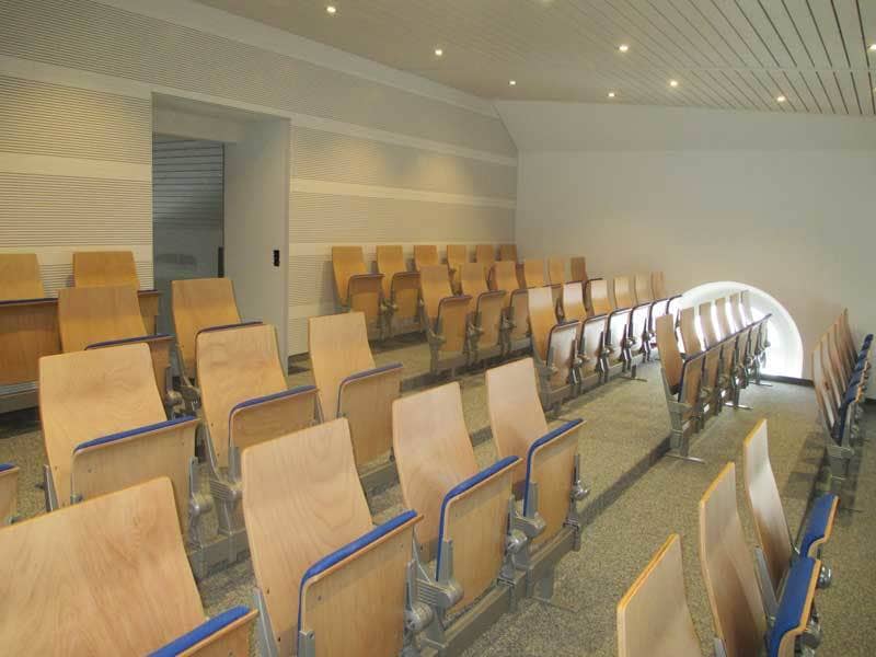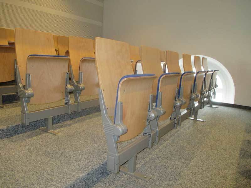 Insbesondere durch eine Formbarkeit als ganze Bank, am besten an einer Wand angebracht, oder auch durchgehend aufgeklappte Einzelstühle, lassen sich diese Bestuhlungen äußerst flexibel benutzen.